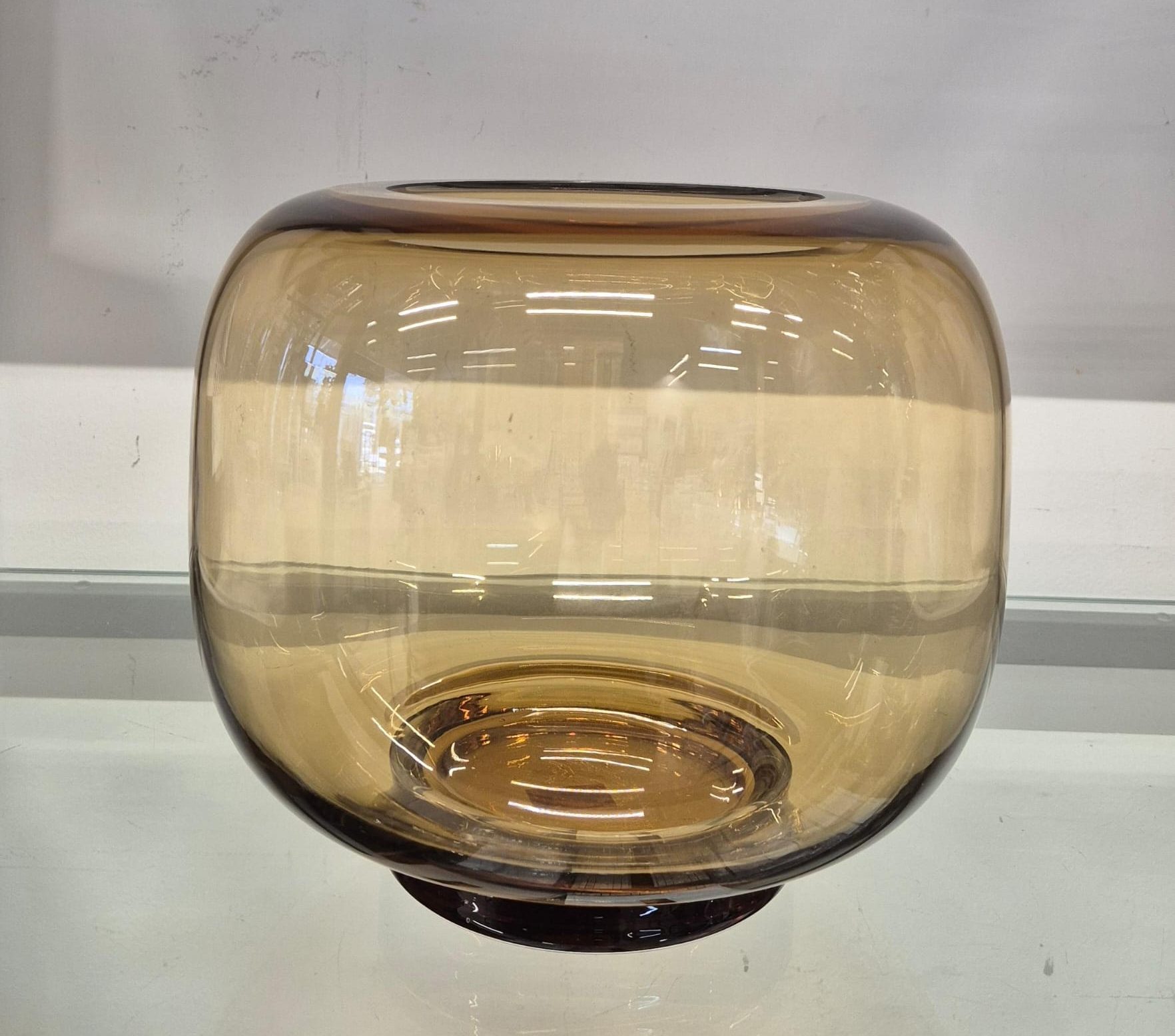 ואזה מעוצבת מזכוכית איכותית בגוון חום־ענבר עם מראה חצי שקוף ומבריק. מושלמת לסידור פרחים, כאביזר נוי במדף או כפריט מרכזי לשולחן. משתלבת נהדר עם עיצוב מודרני, בוהו, כפרי או קלאסי.