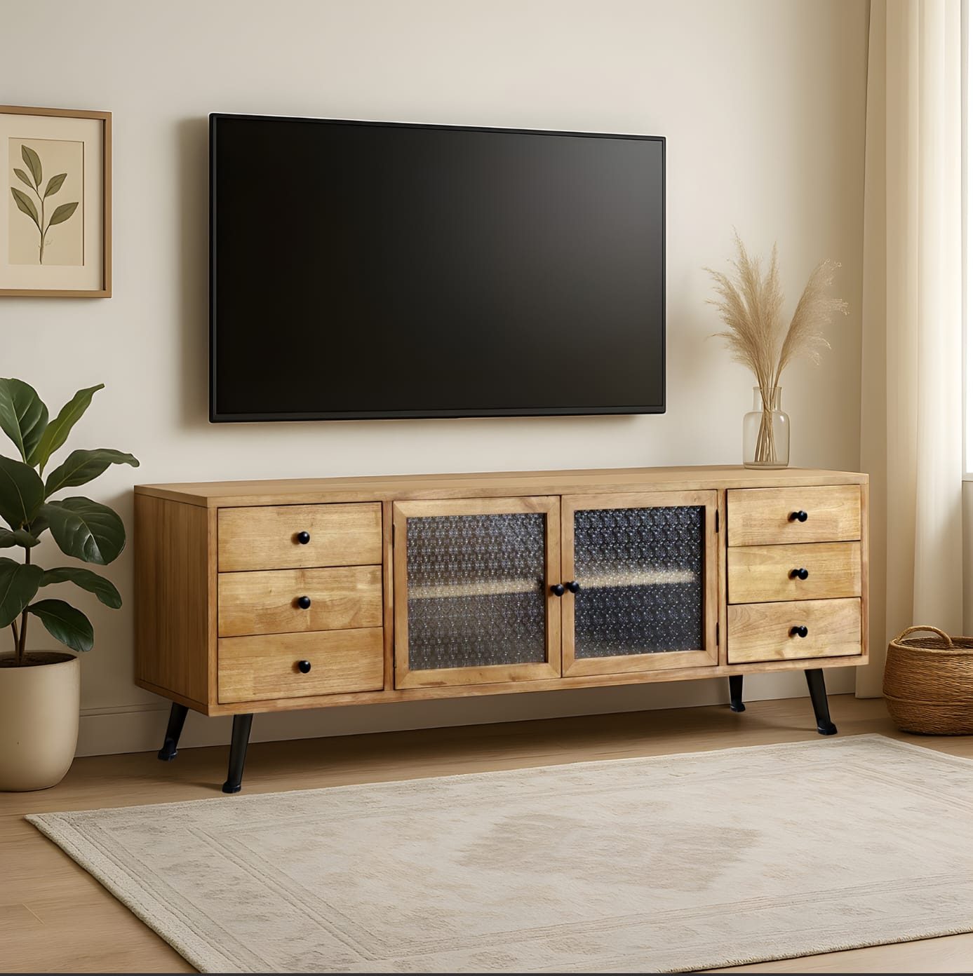 וינה מזנון עץ 6 מגירות/ דלתות זכוכית