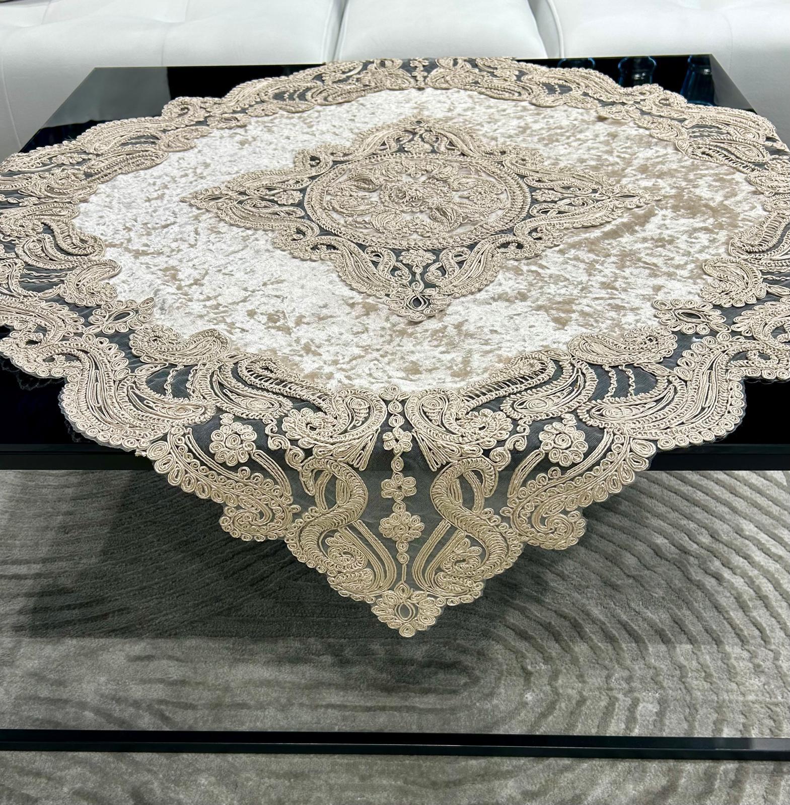 מפת נוי ריבועית מדגם שרלוט, בגודל אידיאלי לשולחנות קטנים או שולחנות סלון.