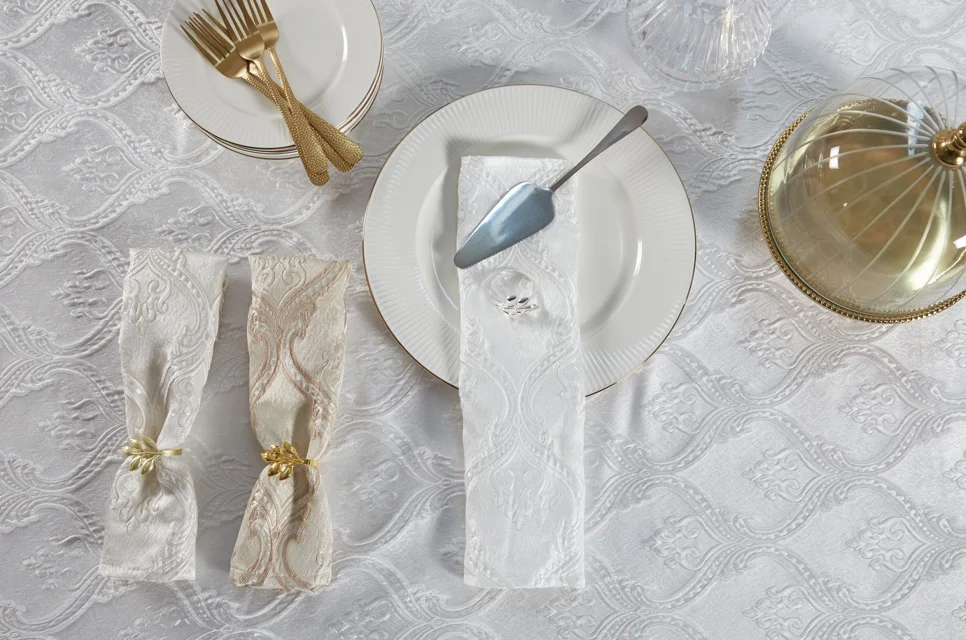 סט שישיית מפיות שולחן עשירות במיוחד עשויות מבדי ג'אקרד יוקרתיים ארוגים בדוגמא מיוחדת ומעוצבת. המפיות דוחות כתמים ועמידות בפני מספר רב של כביסות.
