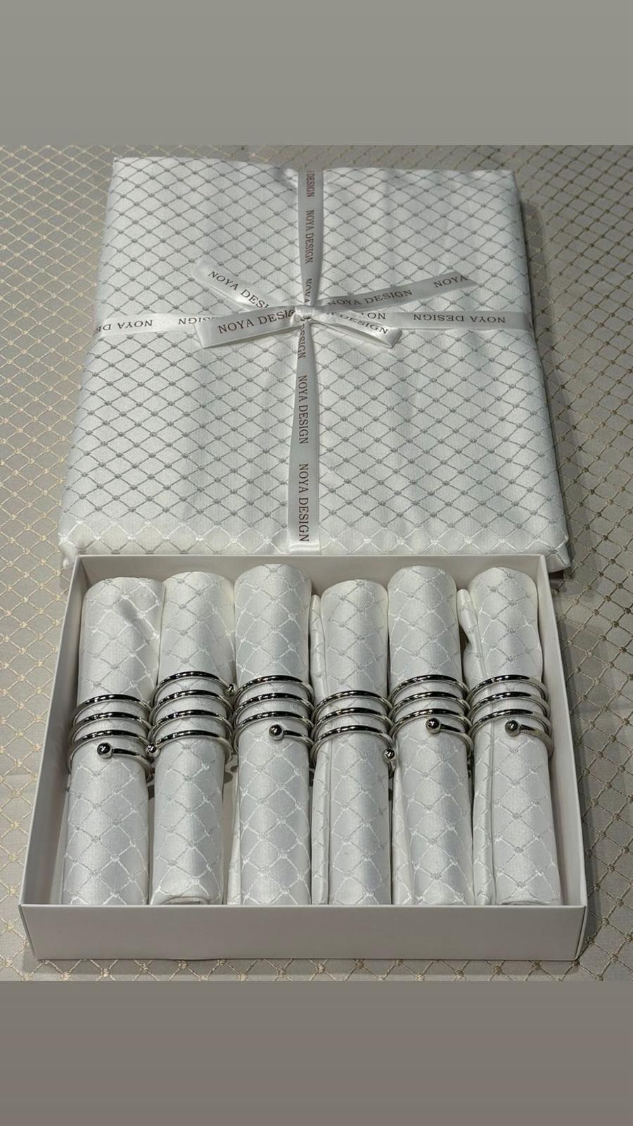 מפת שולחן אלגנטית בעיצוב קלאסי יוקרתי, מגיעה באריזה מהודרת עם טבעות לשדרוג ההגשה.
