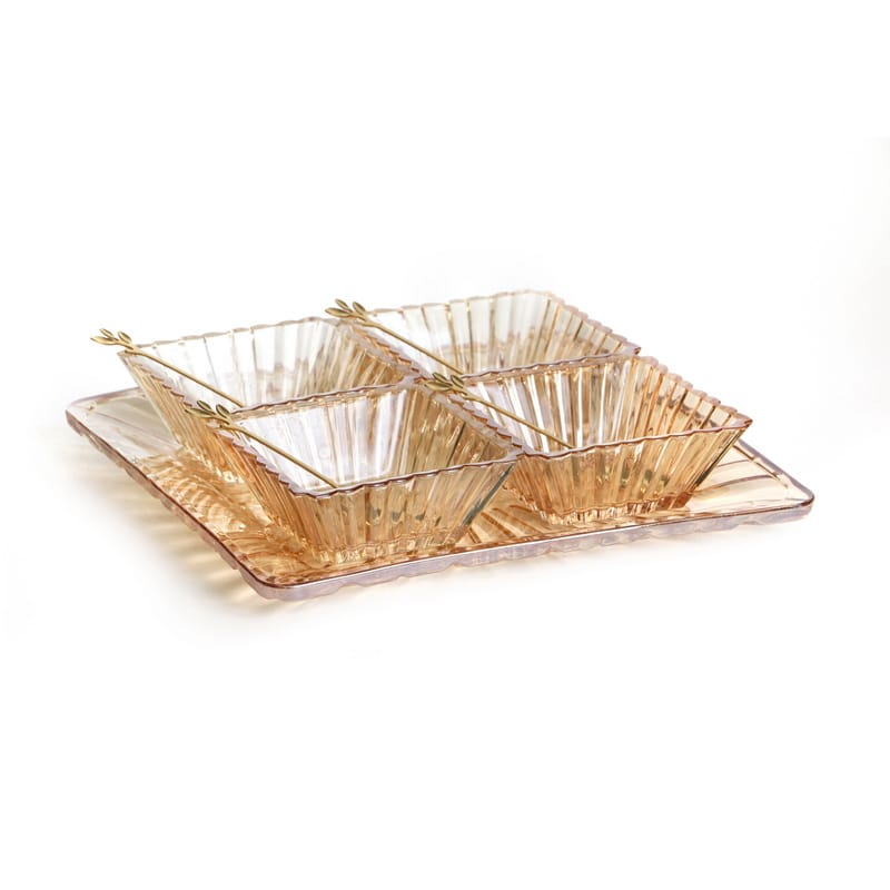 סט הגשה נוצץ עם 4 קעריות על מגש