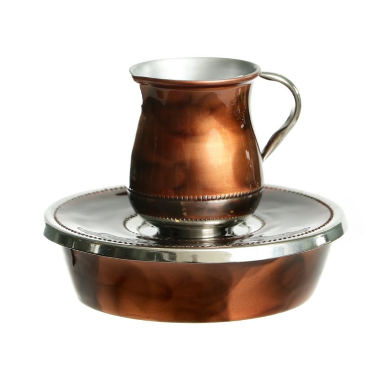 סט מתכת בגוון חום מבריק, בסגנון מהגוני, מתאים לאווירה חמימה ומכובדת.