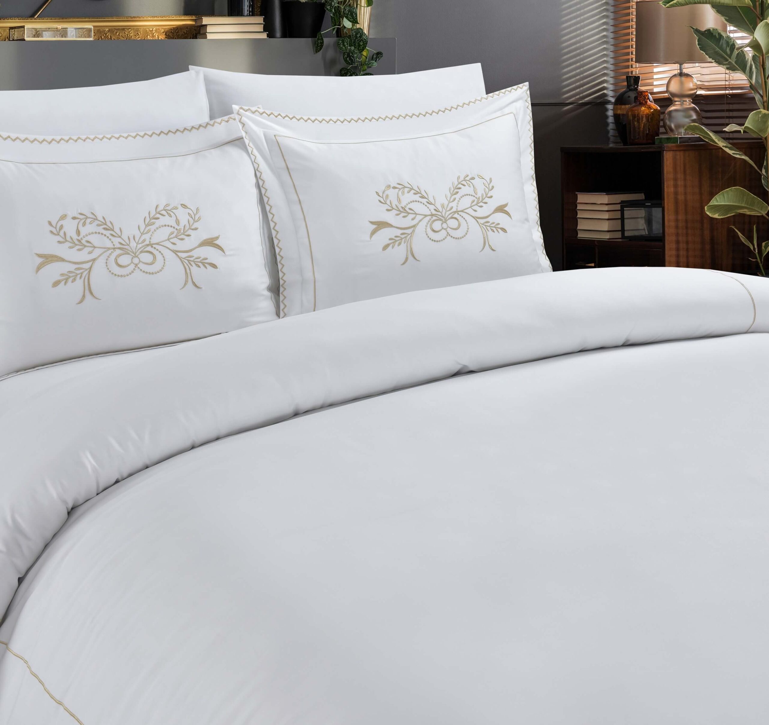 סט מצעים איכותי במיוחד עשוי כותנת סאטן 100% רכה ונעימה למגע, בעיצוב אלגנטי עם רקמה עדינה. מתאים למי שאוהב לישון בסטייל.