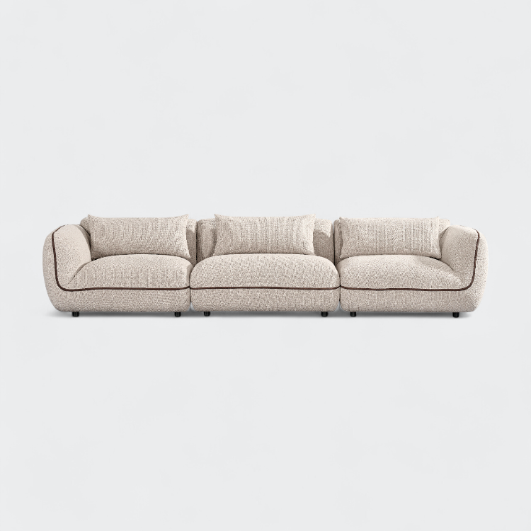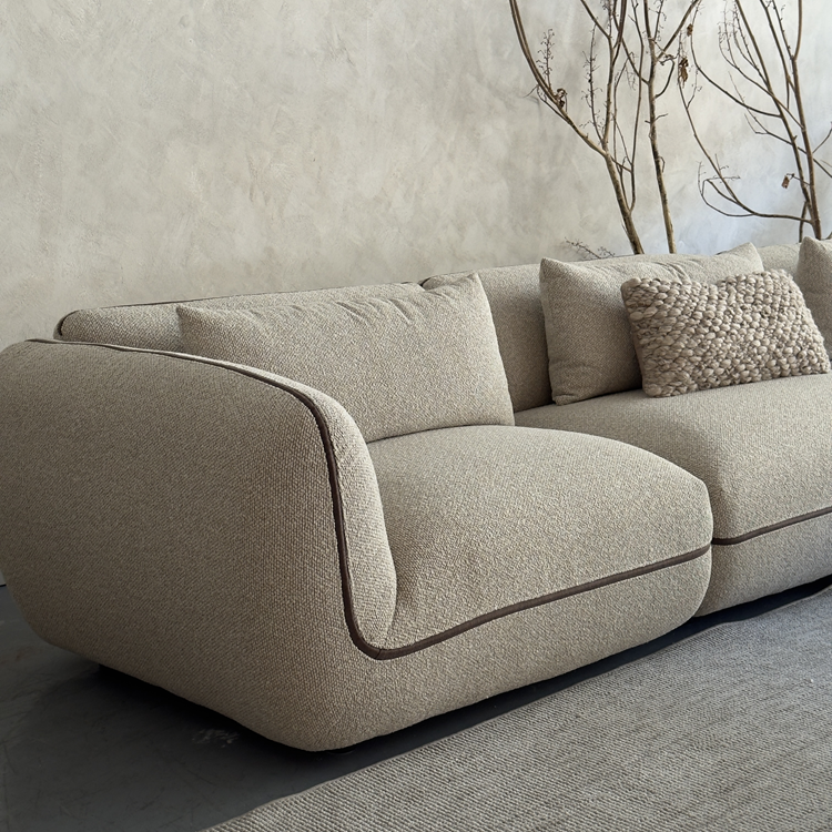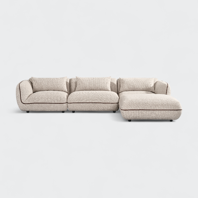 ספת גבריאלה מבד ארוג, בעיצוב מודולרי הכוללת שלושה חלקים והדום .שילוב מושלם של נוחות ועיצוב שמשדרג כל פינת ישיבה.