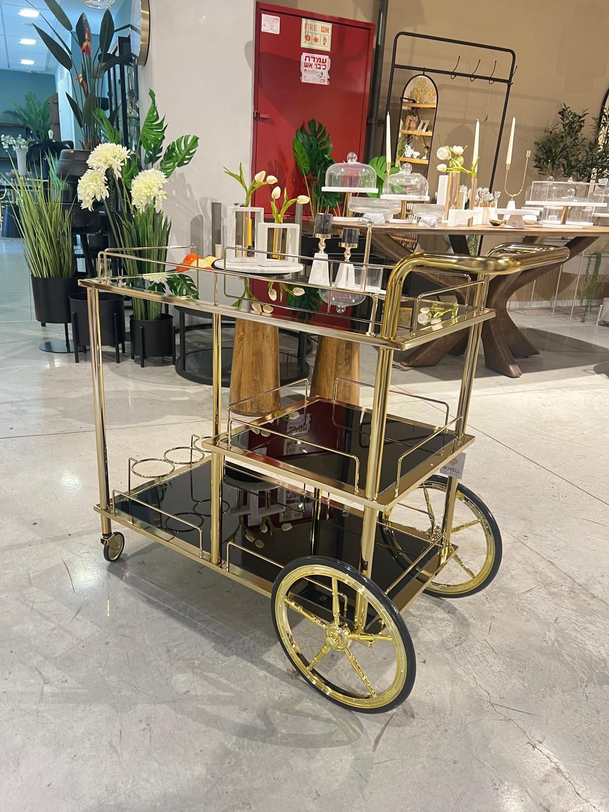גלת הגשה/אלכוהול מרהיבה בגימור זהב מטאלי, בעיצוב מלכותי עם גלגלים דקורטיביים, שלושה מדפים מרווחים ומשענות אחיזה נוחות.מתאימה להצגת בקבוקי יין, קפה, קינוחים או פריטים דקורטיביים – ומשדרגת כל סלון, פינת אוכל או חלל אירוח.