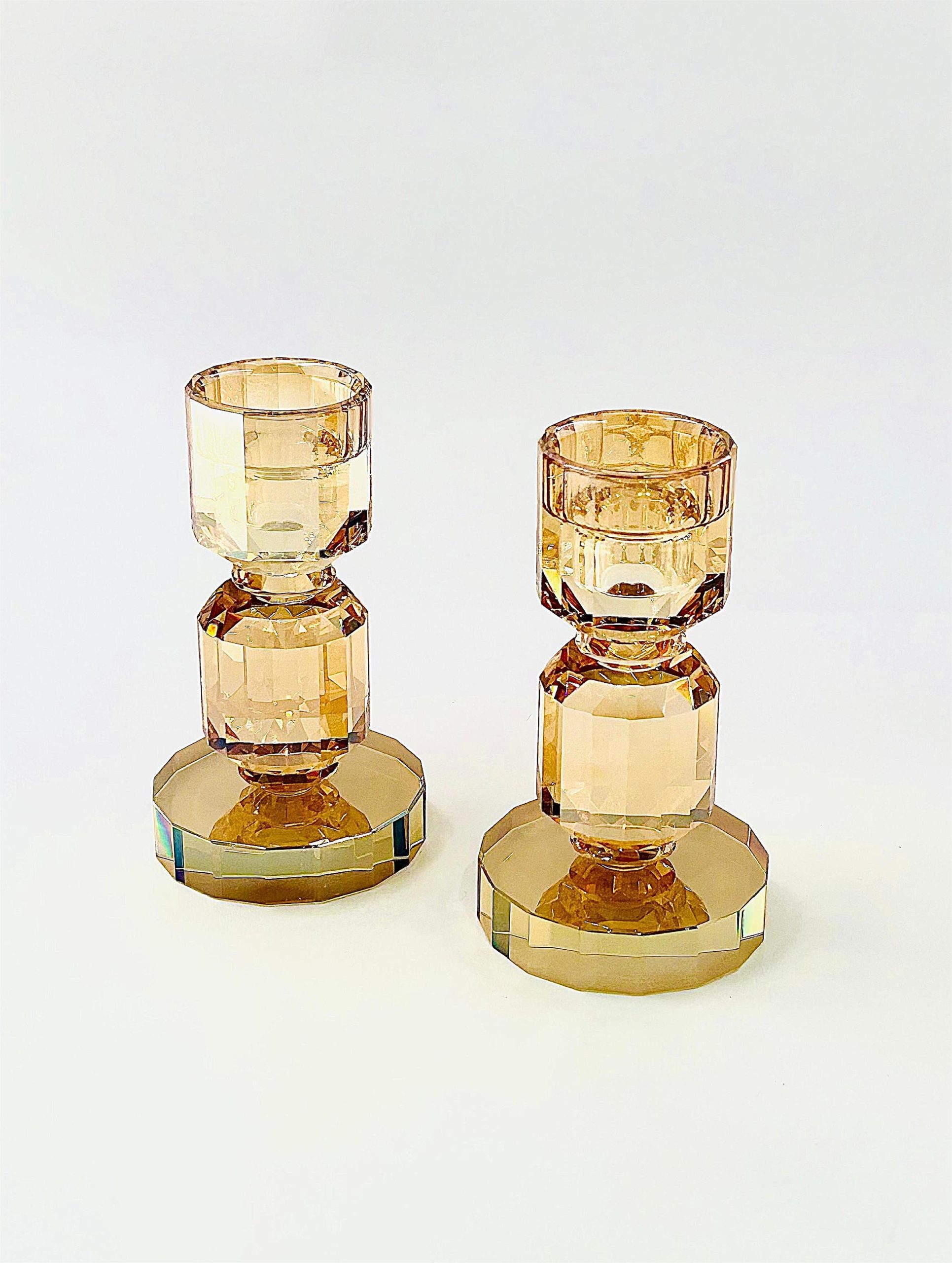 זוג פמוטים מוזהבים עם עיצוב ייחודי, מביאים נגיעה של יוקרה לכל שולחן.