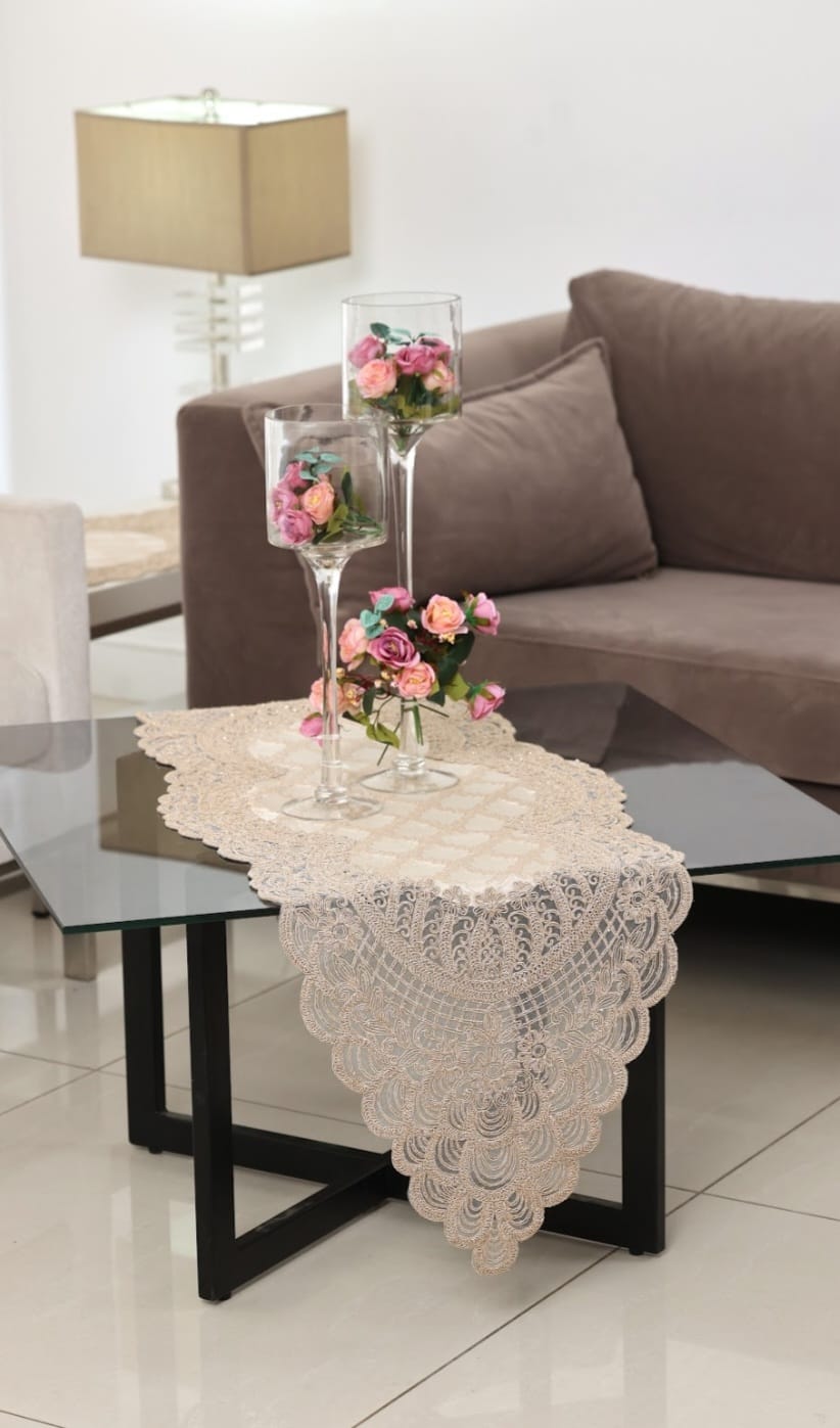 ראנר רקום בעיצוב מטורף בגוון טבעי ואלגנטי, בגודל 60×200 ס"ממתאים לשולחן אוכל, מזנון או שולחן סלון – מוסיף טאץ' יוקרתי בקלות.